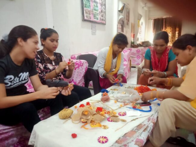 Aacharya Anita’s Sarvha Foundation is facilitating a group of women in Wazirabad Village, Delhi to make Rakhis for the upcoming Rakshabandhan festival. The aim of this initiative is to uplift young girls and give them the confidence to do something with their limited skills.