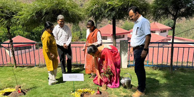Acharya Anita had the privilege of planting a sapling during her visit to NTPC Koldam Township, Himachal Pradesh. This honorable act took place in the presence of Shri R.P. Ahirwar BUH (Koldam) and Smt. Usha Ahirwar and other esteemed individuals.