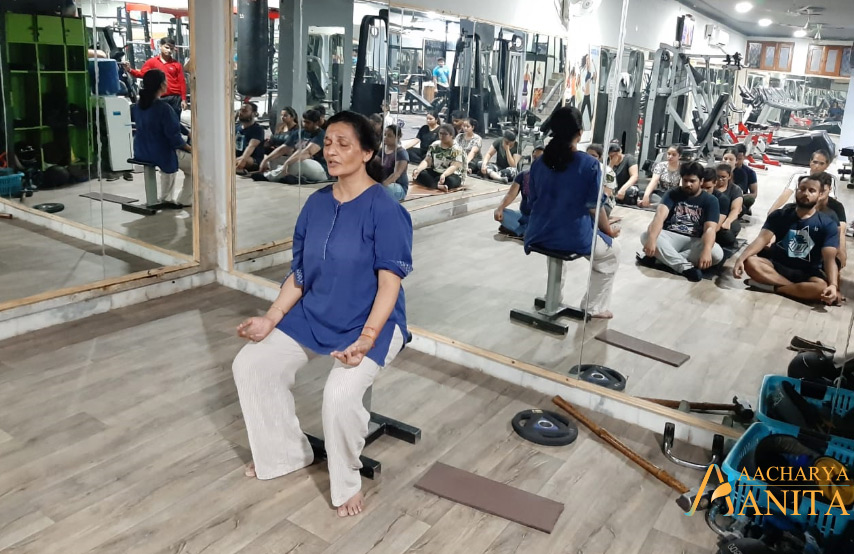 Health and fitness enthusiastic members from ‘Fitness Step’, Lajpat Nagar, New Delhi participated in the meditation session conducted by Aacharya Anita.