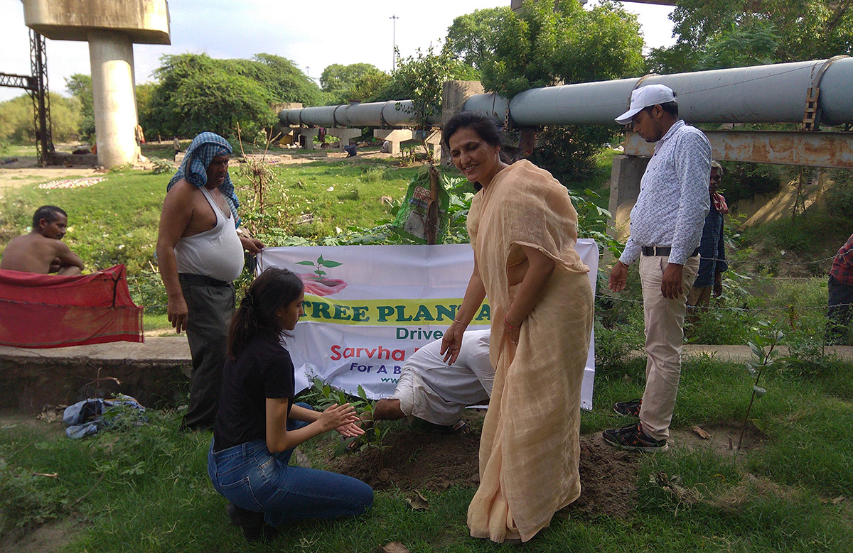 Tree plantation and sapling distribution drive was conducted in Delhi recently under the patronage and guidance of Aacharya Anita, founder trustee of Sarvha Foundation.