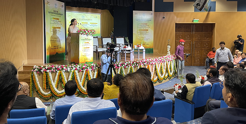 At the Dr. Ambedkar International Center in New Delhi, Acharya Anita got the chance to take part in a conference on social entrepreneurship, where she gave a stirring speech to the audience.