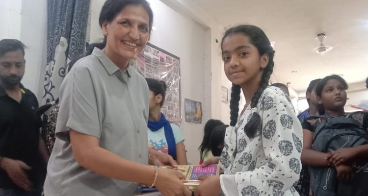 At a gathering held in North Delhi, Acharya Anita’s social service organization Sarvha Foundation distributed storybooks, drawing books, notebooks, and other stationery supplies to the underprivileged students.