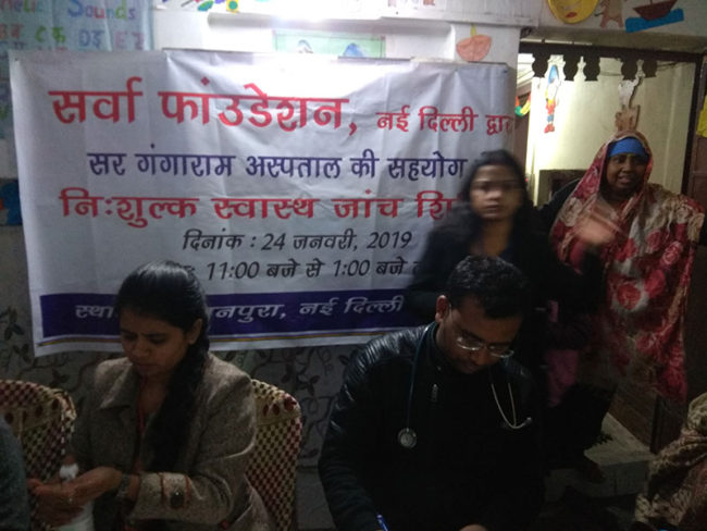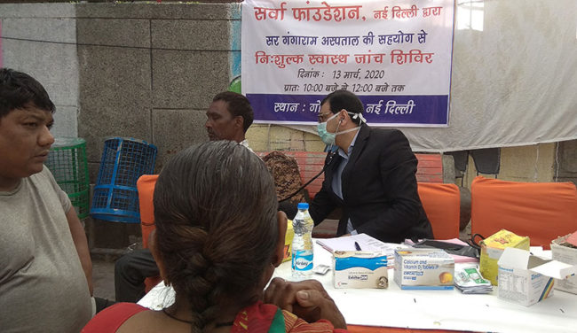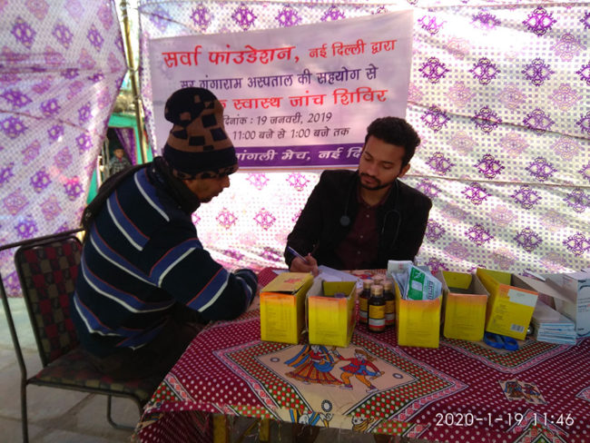 On 31st January 2020, Aacharya Anita’s organisation Sarvha Foundation organised a free health check-up and medicine distribution camp at Peshwa Road, Gole Market, New Delhi.
