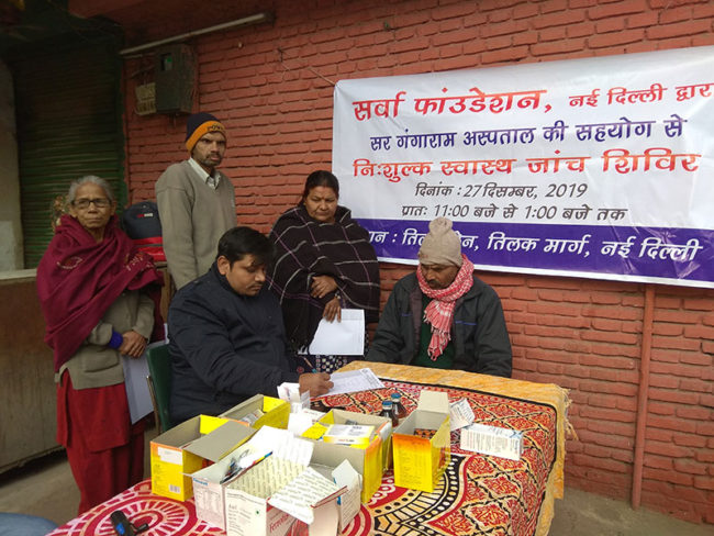 On 27th December 2019, Aacharya Anita’s organisation Sarvha Foundation organised a free health check-up and medicine distribution camp at Tilak Lane, Near Tilak Marg Police Station, New Delhi