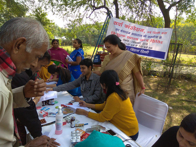 On 18th December 2018, Aacharya Anita’s organisation Sarvha Foundation organised a free health check-up and medicine distribution camp at Tilak Bridge (Near Pragati Maidan Metro Station), New Delhi