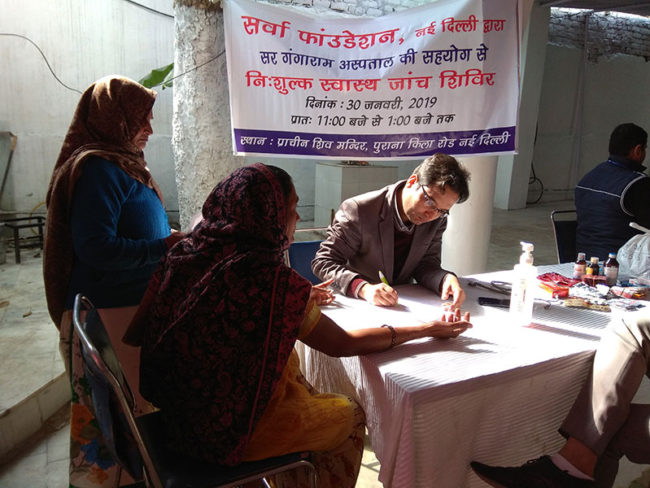On 16th March 2019, Aacharya Anita’s organisation Sarvha Foundation organised a free health check-up and medicine distribution camp at Peshwa Road, Gole Market, New Delhi