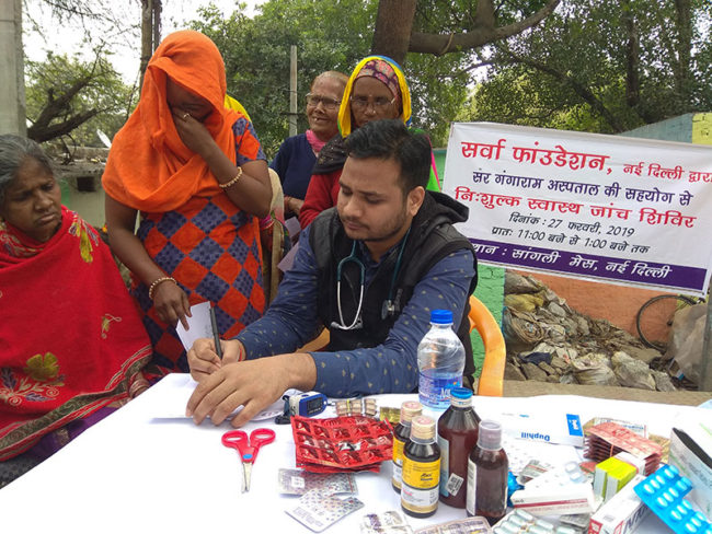 On 27th February 2019, Aacharya Anita’s organisation Sarvha Foundation organised a free health check-up and medicine distribution camp at Sangli Mess, Mahatma Jyoti Rao Phule Marg, New Delhi