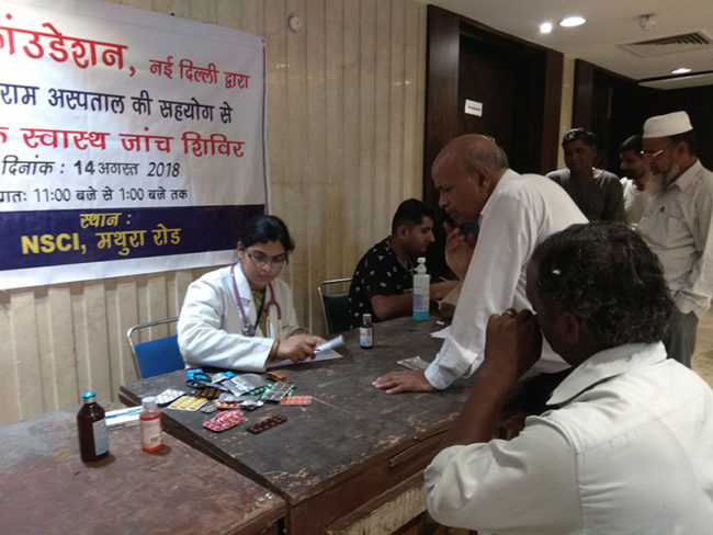 On 14th August 2018, Aacharya Anita’s organisation Sarvha Foundation organised a free health check-up and medicine distribution camp at NSCI, Mathura Road, New Delhi