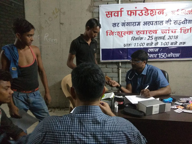 On 18th July 2018, Aacharya Anita’s organisation Sarvha Foundation organised a free health check-up and medicine distribution camp at Sector – 63, NOIDA