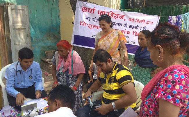 On 17th September 2018, Aacharya Anita’s organisation Sarvha Foundation organised a free health check-up and medicine distribution camp at Dev Nagar, Karol Bagh, New Delhi
