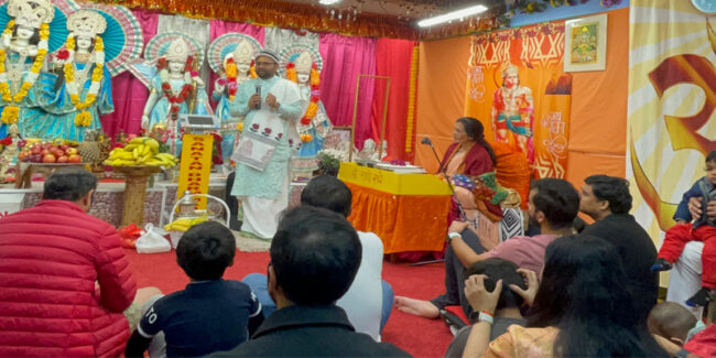 Acharya Anita was invited and facilitated as guest at the Hindu Samaj Mandir, Chicago, USA. Acharya ji addressed a the enthusiastic gathering there and spoke on spirituality et length.