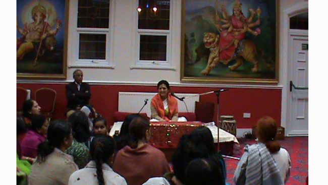 Aacharya Anita addresses a spiritual gathering at a Hindu Temple in Liverpool