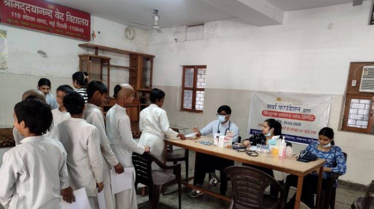 Acharya Anita’s social service organization, the Sarvha Foundation, held a health check-up camp on Wednesday, March 25, 2026, at the Gurukul (Shrimad Dayanand Vedarsh Mahavidyalaya) in Gautam Nagar, Hauz Khas, New Delhi. A significant number of students residing at the Gurukul attended the camp and made good use of the services provided.