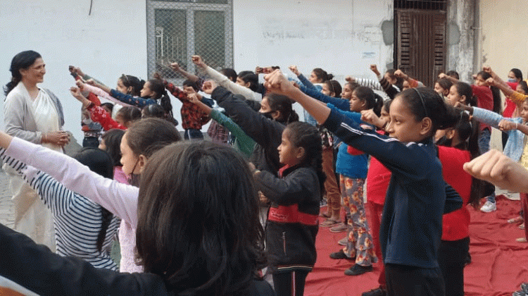 Sarvha Foundation’s trustee Acharya Anita had a sweet and encouraging interactive session with a group of kids at North Delhi’s Wazirabad village locality; those kids are taking self-protection and physical workout training from professional.