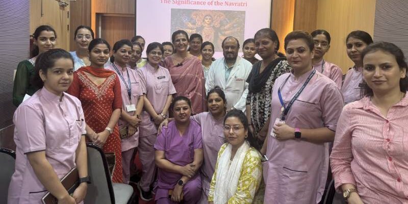Acharya Anita presented an engaging speech for the Nursing staff and Doctors regarding the significance of the ongoing Navratri at Sir Gangaram Hospital.